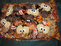 While I refuse to support or encourage what has increasingly become commonly endorsed in our culture for All Hallow's Eve..(evil,ghouls and such) I do love to bake cookies,make candies and load up a tray and numerous treat bags for my "little" friends... Doing research this past year , about All Hallow's Eve and All Saints Day , I like the way the Catholic church would have the church totally dark on All Hallow's Eve (All Holy Eve) then bring in the Easter candle to light the darkness. Everyone would stand giving greetings of Alleluia Christ is risen... He is risen indeed....Alleluia ( I added the color of green to remind us of the new life we can have in Him, "If" we will but accept it) All Saints day was originally to remember the Saints . Not being Catholic I do not know if this is something they still do however.( http://ancient-future.nethalloween.html/ ; http://www.churchyear.net/allsaints.html ; http://www.geocities.com/Athens/Ithaca/1506/all-hallows-eve/index.htm?20071 ; http://www.bbc.co.uk/religion/religions/christianity/holydays/halloween.shtml; http://www.liturgy.co.nz/churchyear/allsaintsvigil.html perhaps you would enjoy honoring the Saints before us, especially those who have sacrificed by living Godly lives, at a great price. Such great cost of life is still going on in our present day world, though we don't hear much about it....(odd that Christians can be killed and tortured and not much is said,but great lengths about the death of a condemned criminal in our "news?"....( an earlier post tells you ,that having such a love of critters, not only do I study them I ruminate too (on ideas , that is !!!!)....( why not start a new family tradition ??? For All Hallow's Eve 2008 , having the room all dark and lighting a candle to remind us of how Christ is the true light of the world.then reading the 11th chapter of Hebrews and thanking God for all of our many blessings ,especially the price for many of these blessings by not only Saints before us ,but the soldiers who sacrifice much ,even life for our freedoms . Perhaps reading the Light and the Glory by Peter Marshall or The Divine Romance, by Edwards or God came Near by Max Lucado during the month of October, hey give your kids a real treat and take all out to pizza when everyone has read one of these books????...???? Bake some fun cookies....the little owls have a cashew bill . white candy melts are placed on hot cookies and then a black m&m makes the pupil....a spider cupcake has licorish legs and a black gumdrop head placed on a chocolate frosted cupcake , dipped in chocolate sprinkles for a fuzzy body :-) enjoy.......